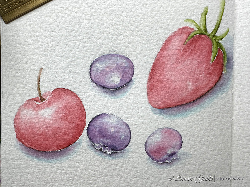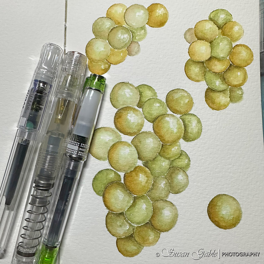 I also look for shadows and darken areas where the grapes appear to be touching each other and this makes the grapes appear to pop off the paper.