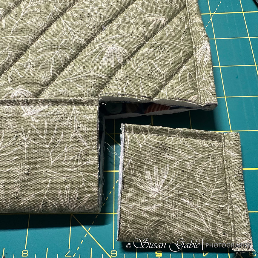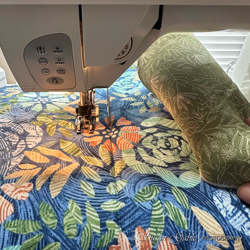 Tip #4: Sewing over thick fabric sandwiches with seams. Twice I had my sewing machine thread break while quickly sewing over thick areas of fabric. To alleviate the problem, I used my fingers to press and flatten the fabric. Kind of like giving it a good squeeze between my fingers. I also sewed very slowly over the thick areas of fabric.