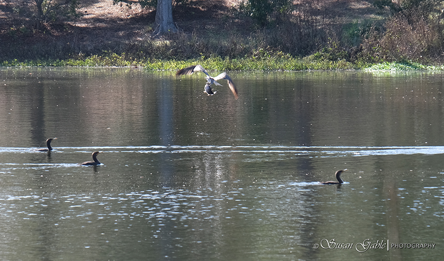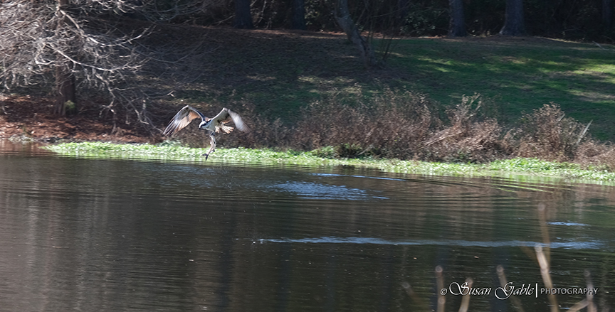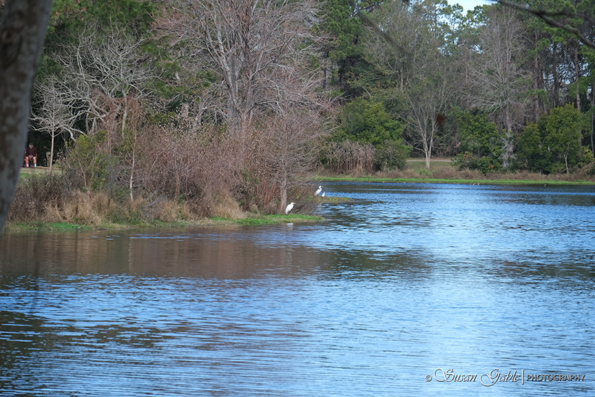 Hubby and I sat on a bench and watched the wildlife go by. We literally saw lots of waterfowl in the water. We also kept our eye on the sky and watched several birds fly around. We saw a large bird dive into the water and make a huge splash!