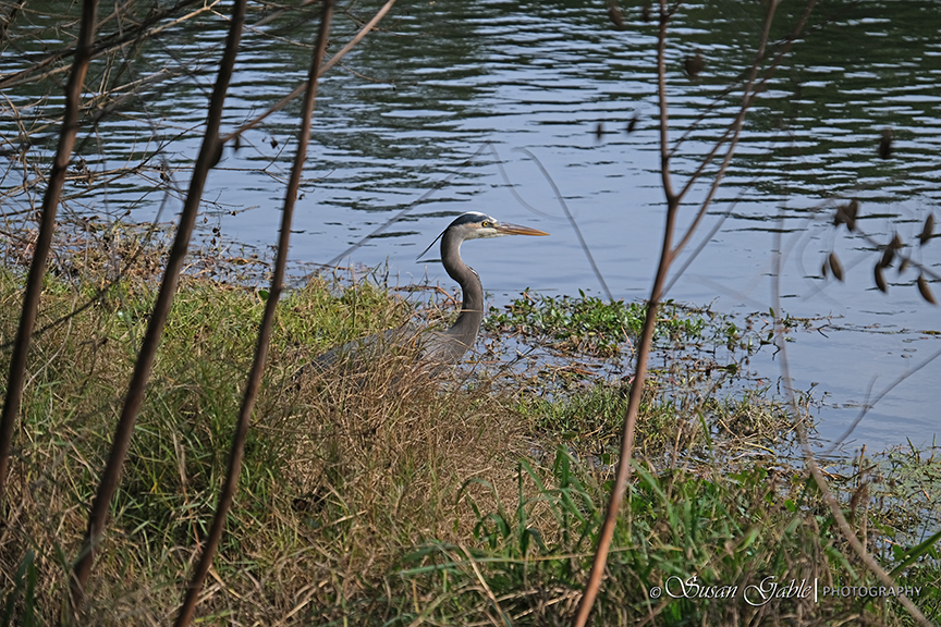 This is one of my favorite pictures of the blue heron against the ripple of water in the background. I did not notice the water ripples until I took this picture. This turned out to be a lovely artistic surprise.