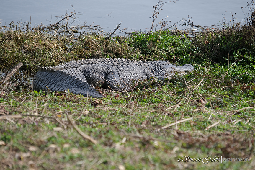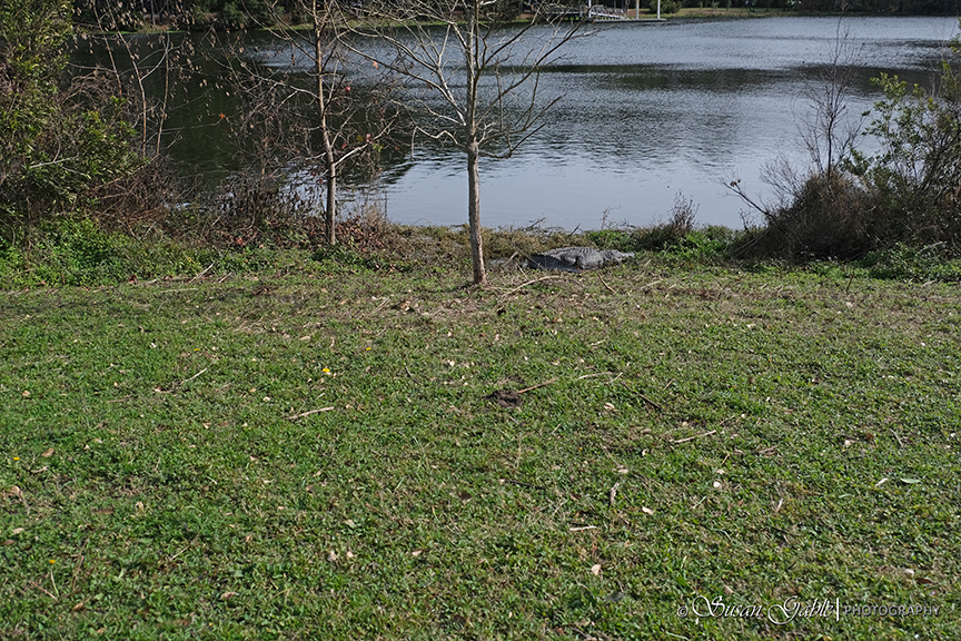 As we walked and barely reached the halfway point of the loop, Hubby was quick to spot an alligator.