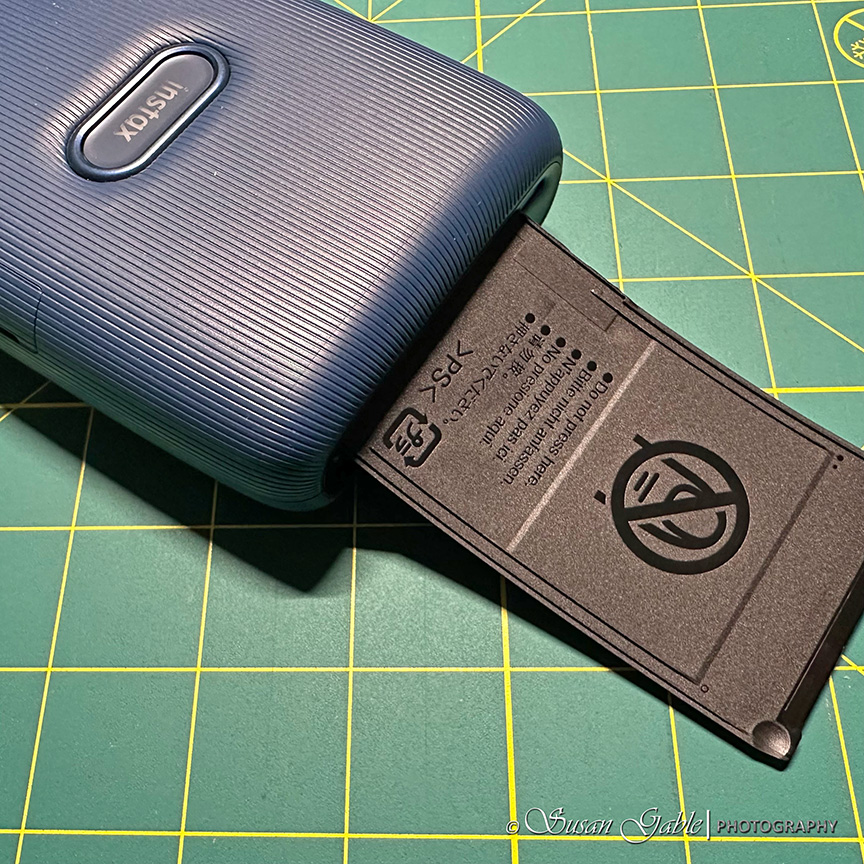 When the picture is finished printing, the film slides out of the opening. I just give a small tug to release my picture from the printer.