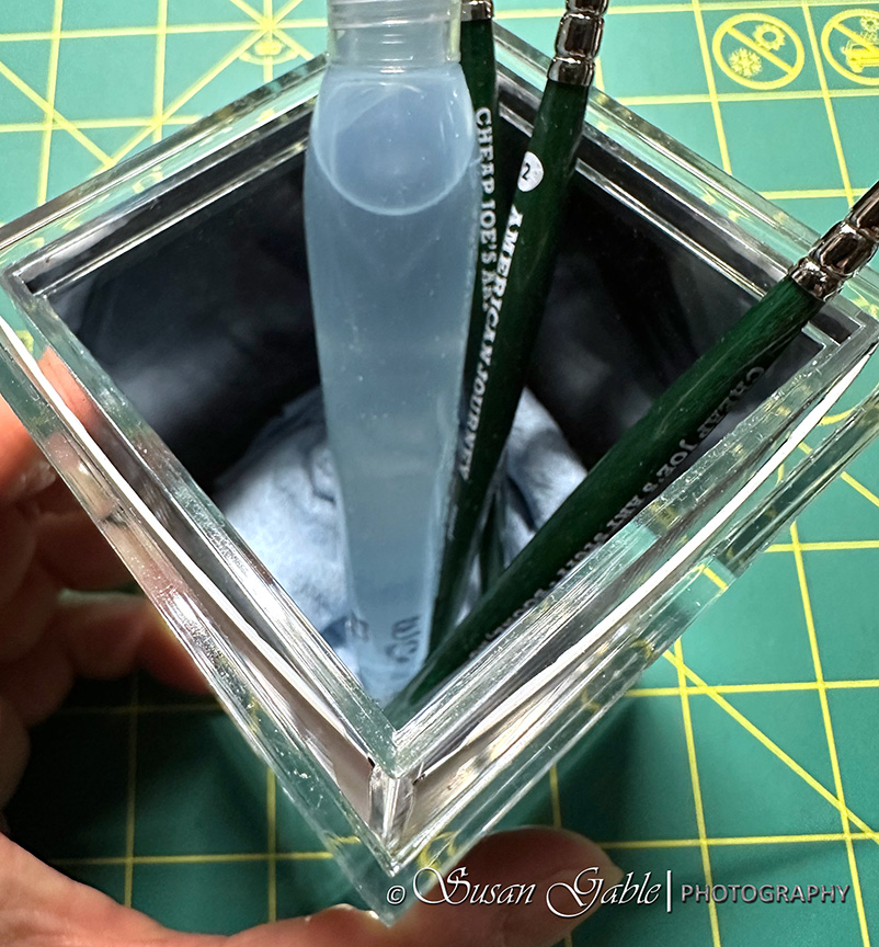 I recently purchased an acrylic picture holder/container from Amazon. It holds four Instax pictures and I use this container to store my mini paint brushes.