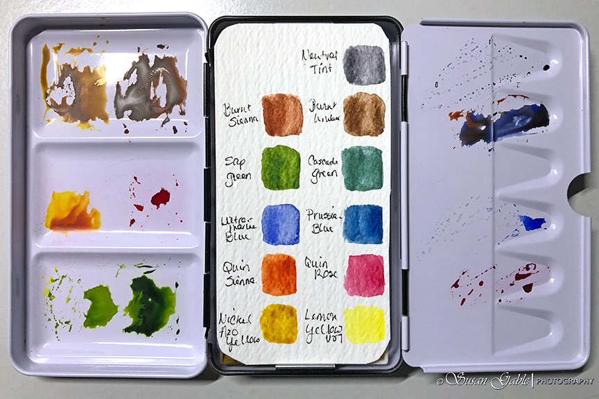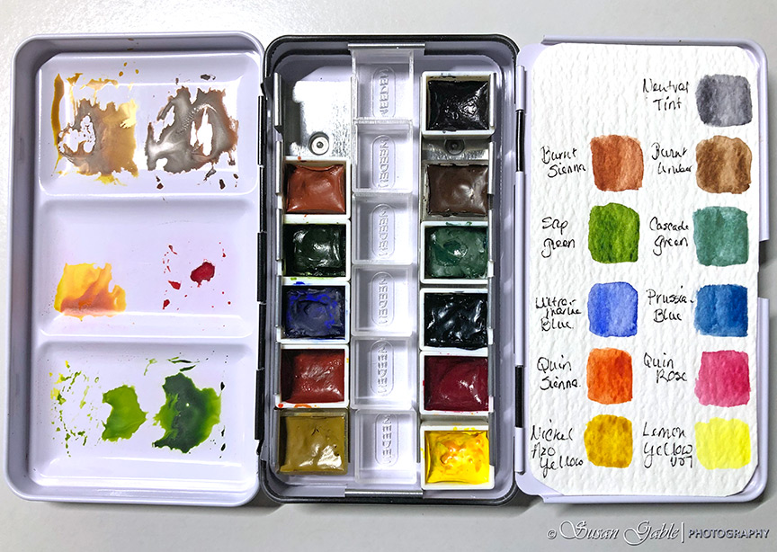 In the next picture, I’ve maxed out my palette and it shows it completely filled with 20 pans of colors. Oh my! What was I thinking?!