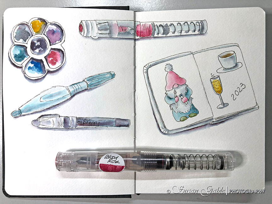 I’ve been using the Pentel water brushes for many years to create my pen & ink wash sketches. The water brushes worked brilliantly for creating my artwork and using fountain pen inks. I found a way to create lovely watercolor-like art without using watercolor paints. I have had many zen-like creative moments.