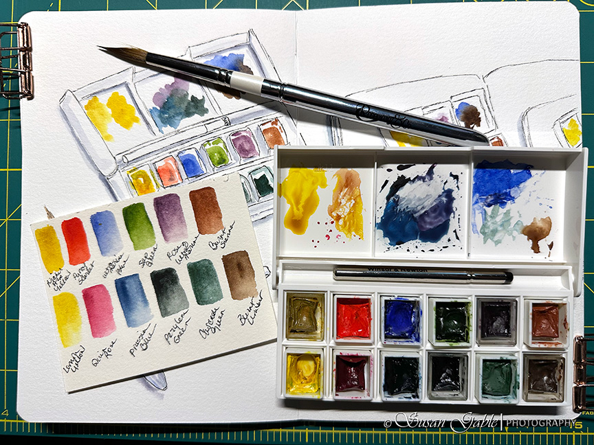 Paint: Daniel Smith Watercolors. Used my tubes of paint colors to fill the half pans.